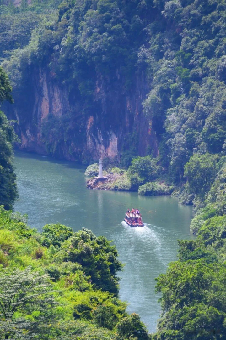 岭南诗画:乘船游览“岭南诗画走廊”,两岸青山如黛,江水碧绿,置身其间如行山水画卷中……